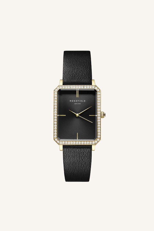 Montre "Octogon Crystal" noire et dorée de Rosefield