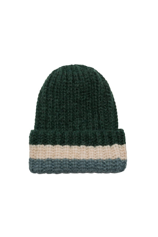 Bonnet bleu, blanc et vert en alpaga et laine de The Odder Side