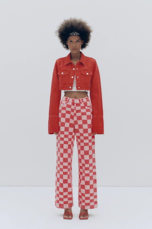 Jean wide leg à carreaux taille haute de Zara