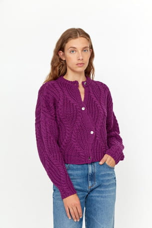 Cardigan violet "Divine" en laine tressée de Roseanna