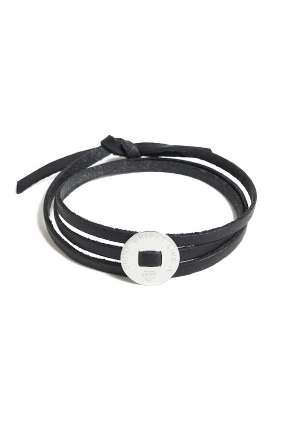 Bracelet en cuir noir et boucle argentée "Diamond" de La Môme Bijou