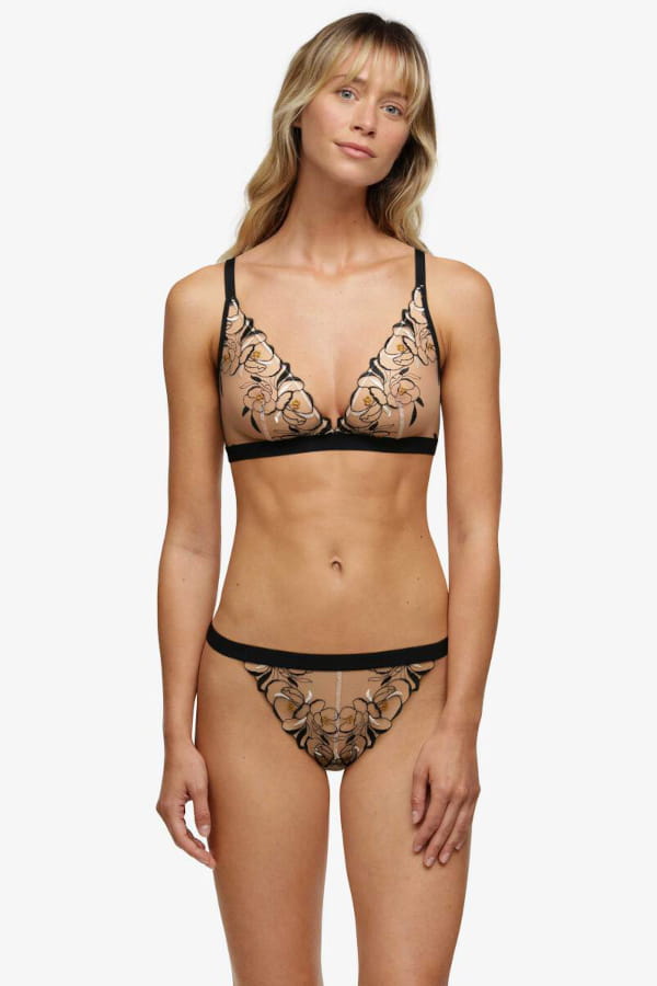 Ensemble lingerie en tulle beige à fleurs noires "Donna" de Darjeeling