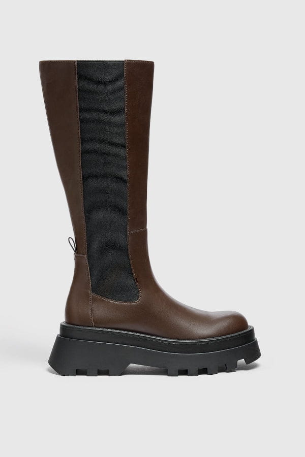 Bottes hautes marron à élastique et semelle crantée de Pull&Bear