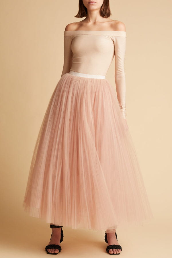 Jupe longue en tulle rose poudrée "Samantha" de Khaite
