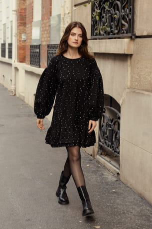 Robe noire en tweed à pois "Le Odessa" de Rosaé