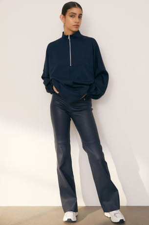 Pantalon bleu foncé en cuir souple avec découpe sur les genoux de H&M