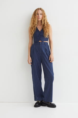 Pantalon rayé bleu foncé taille haute de H&M
