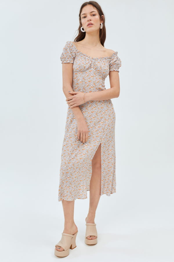 Robe à fleurs fendue avec manches bouffantes de H&M