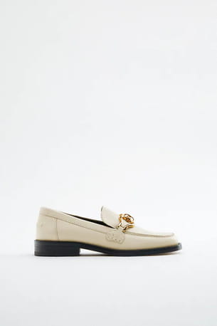 Mocassins blanc écru plats en cuir à boucles de Zara