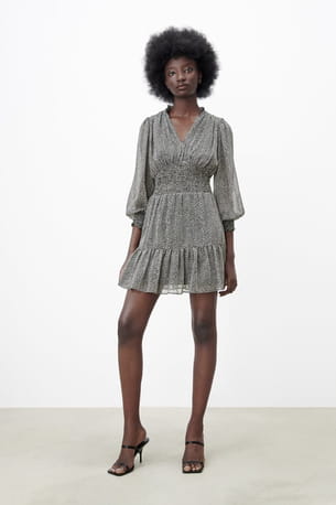Robe noir et blanc à imprimé animalier fluide à volants de Zara