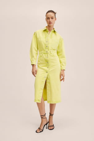 Robe midi en denim couleur citron vert de Mango