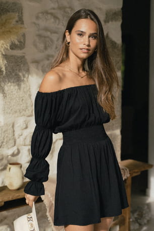 Robe noire à la taille serrée "Burleigh" de Maryne