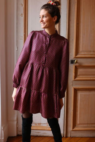 Robe en soie violette à imprimé "Emma" d'Elise Chalmin