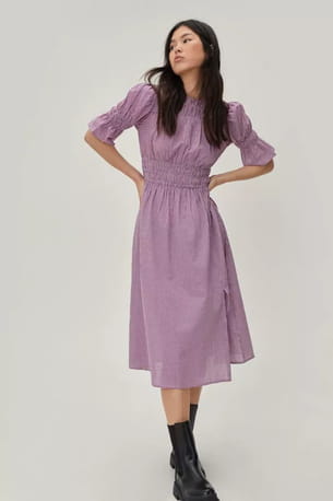 Robe violette imprimée vichy à empiècement froncé à Nasty Gal