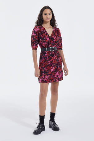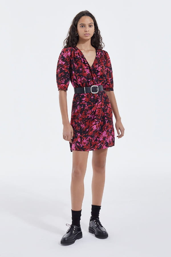 Robe rouge en soie imprimée de The Kooples