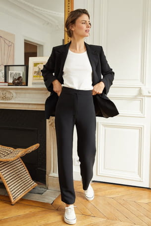 Pantalon de tailleur en crêpe noir "Battant" de Septem