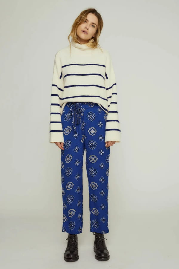 Pantalon fluide bleu à imprimé "Eliot" de Swildens