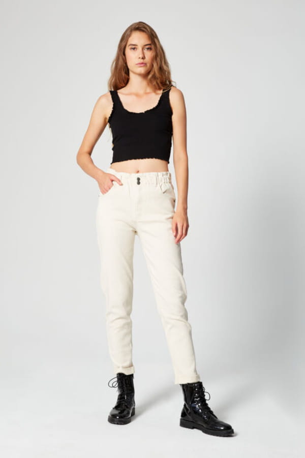 Pantalon carotte beige taille élastiquée avec fronces de Jennyfer
