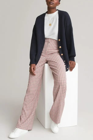 Pantalon large à carreaux rose de La Redoute