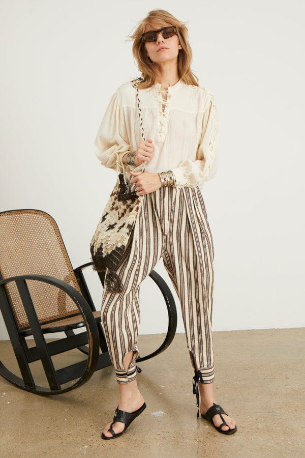 Pantalon rayé à nœud cheville "Zouave Bis" de Laurence Bras