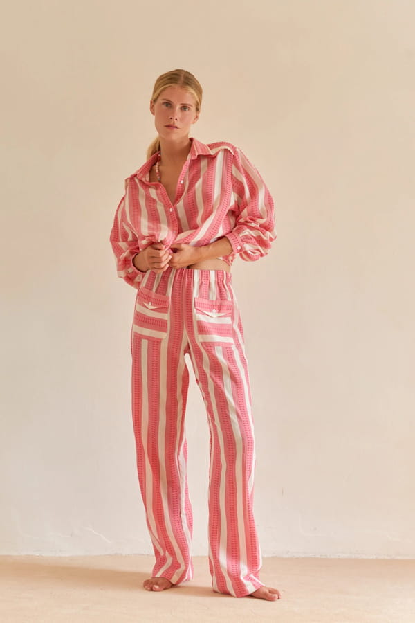 Pantalon à larges rayures rose et blanc "Kitchen" de Josephine