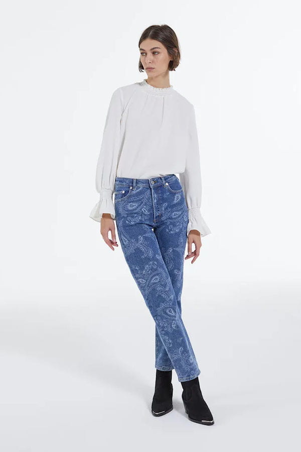 Jean droit motif cachemire