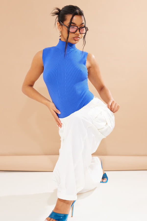 Body en maille bleue à col haut de PrettyLittleThing