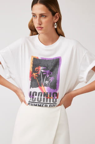 T-shirt blanc à imprimé palmier "Miami" de Suncoo
