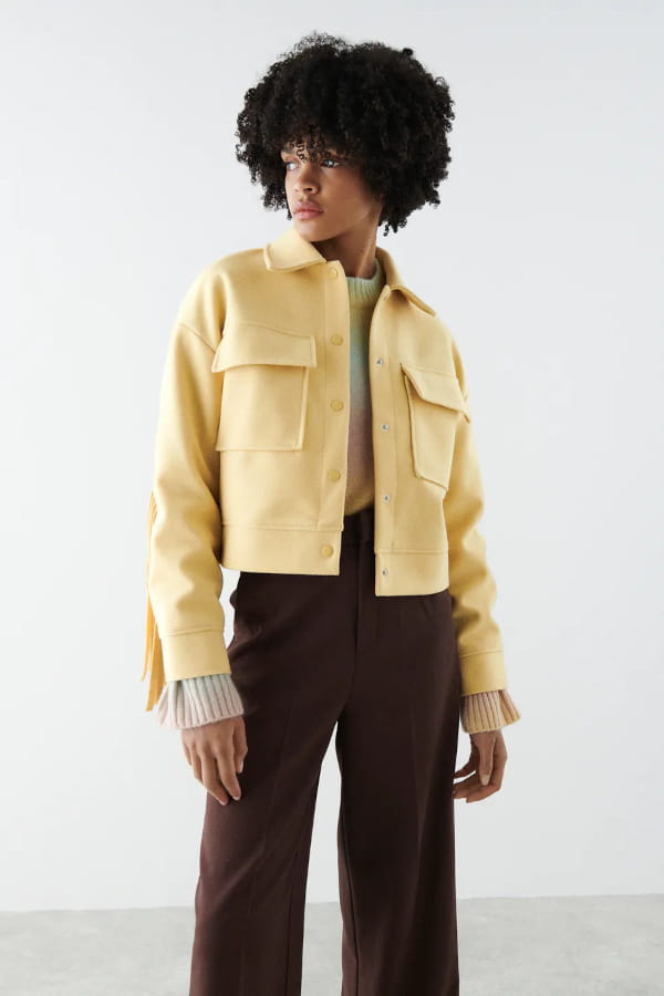 Veste jaune à franges et poches "Faya" de Gina Tricot