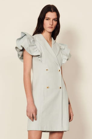 Robe tailleur pastel à épaules volantées de Sandro