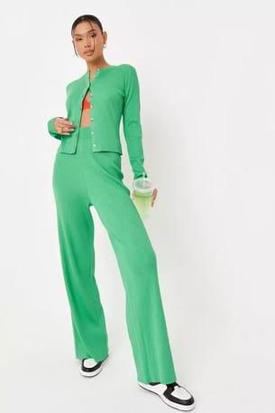 Ensemble en tricot côtelé vert de Missguided
