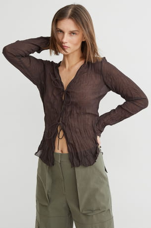 Blouse en mousseline froissée avec liens à nouer de H&M