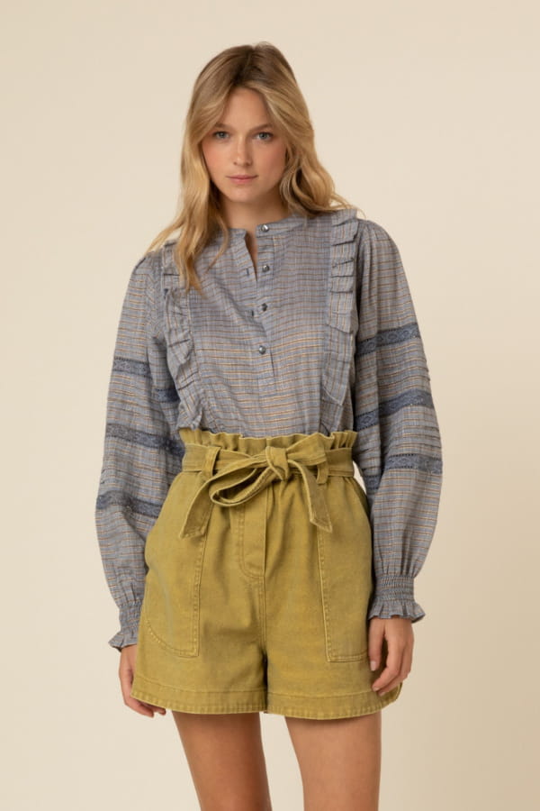 Chemisier gris à volants en coton "Jada" de Frnch