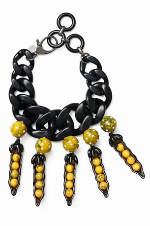 Collier chaîne noir avec cosses de petits pois jaunes d'Iris Apfel x H&M