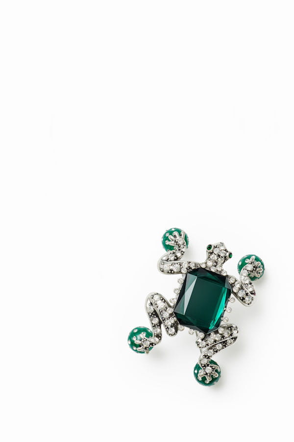 Broche grenouille émeraude d'Iris Apfel x H&M