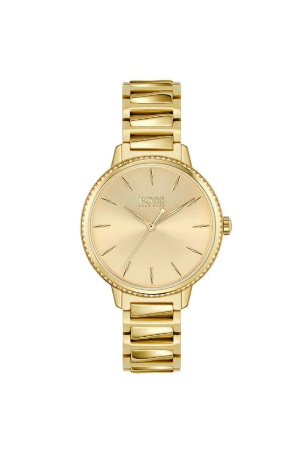 Montre dorée et champagne signature de Boss