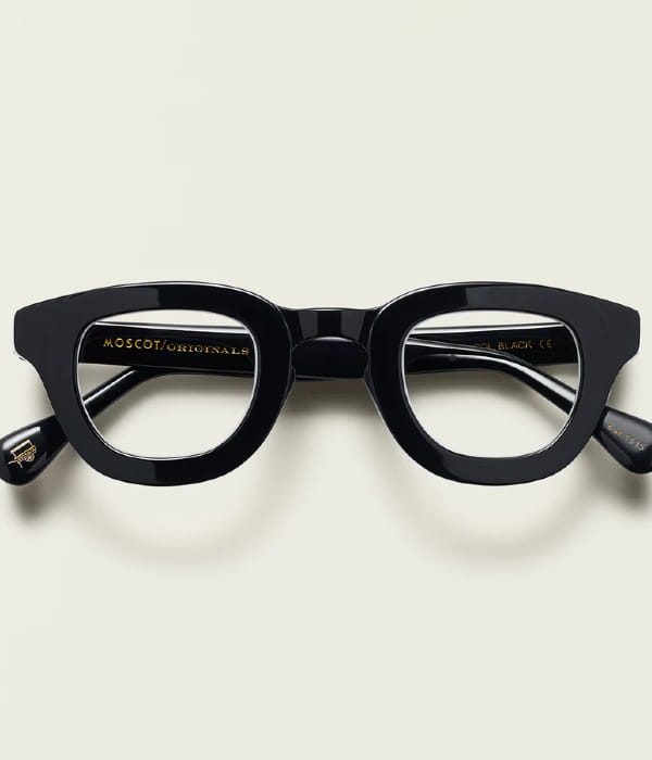Lunettes de vue noires aux rivets en diamant sur les tempes de Moscot