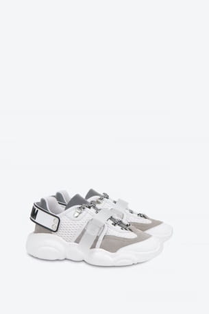 Baskets blanches avec lanière transparente "Teddy Shoes Roller Skates" de Moschino