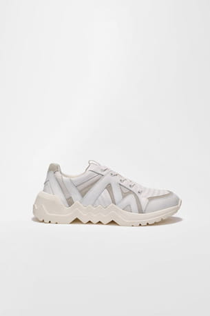 Baskets blanc et gris en cuir à semelle épaisse de Maje