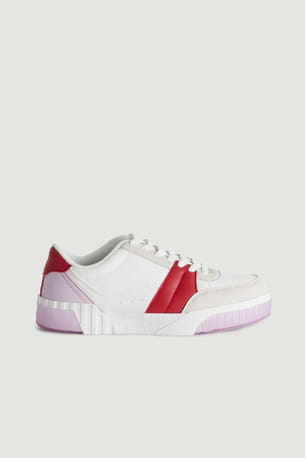 Baskets blanches compensées avec détails colorés