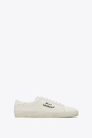 Baskets blanches en toile et cuir effet usé de Saint Laurent