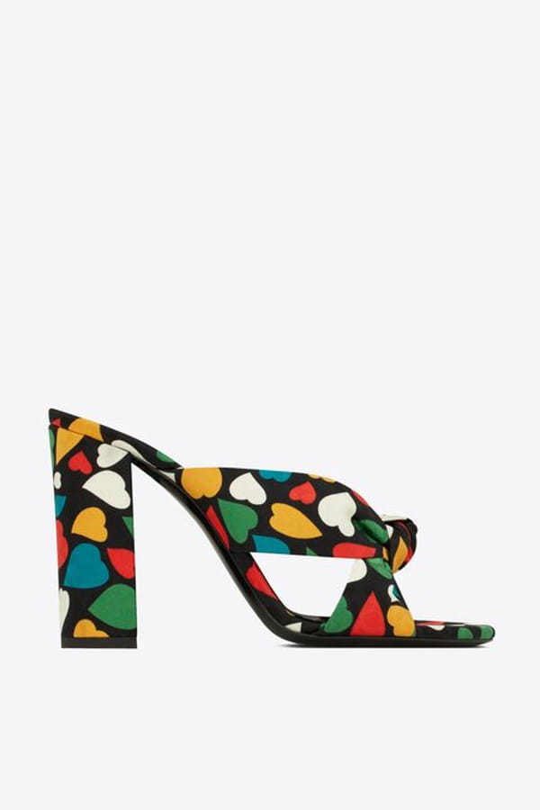 Mules multicolores à motifs cœurs et à talons "Bianca" de Saint Laurent