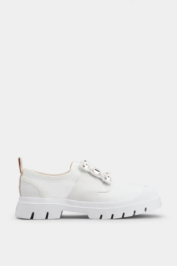 Sneakers blanches en cuir et à boucle en strass "Walky Viv'" de Roger Vivier