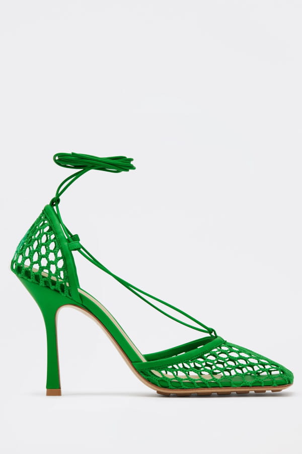 Sandales vertes en maille "Stretch" de Bottega Veneta