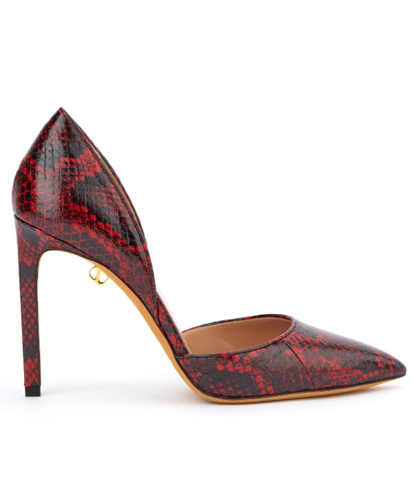 Escarpins rouge et noir imprimés python "Nieves" de Maison Skorpios