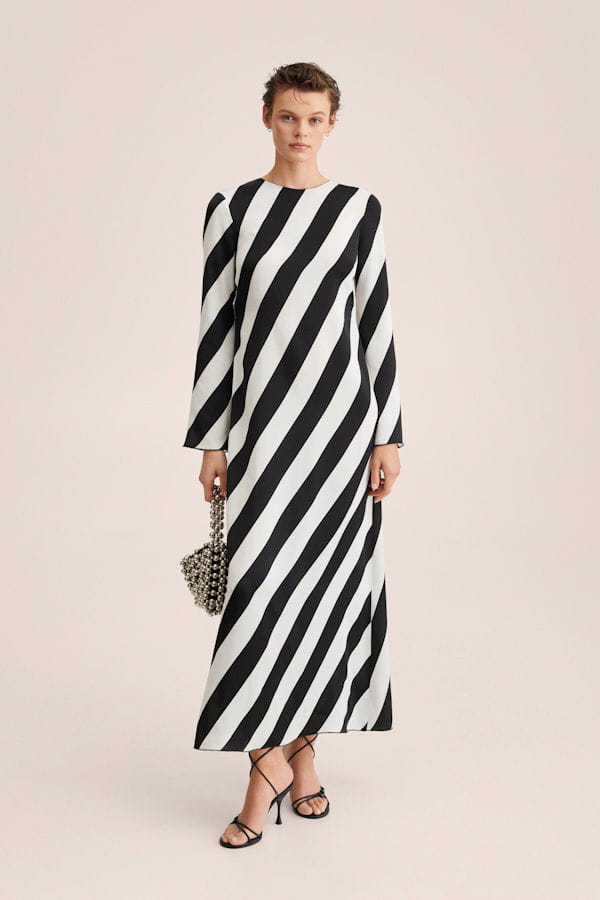 Robe droite à rayures noires et blanches de Mango