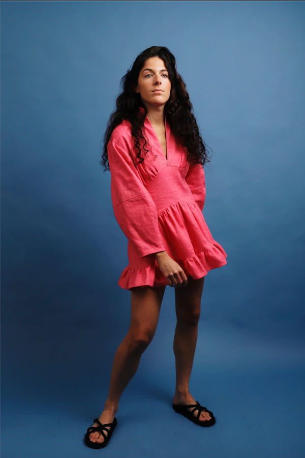 Robe rose cintrée à la taille et manches bouffantes "Cousteau" de Kerners