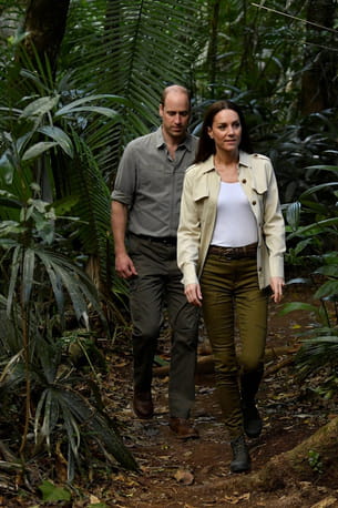 Kate Middleton en pantalon kaki le 21 mars 2022 au Bélize.
