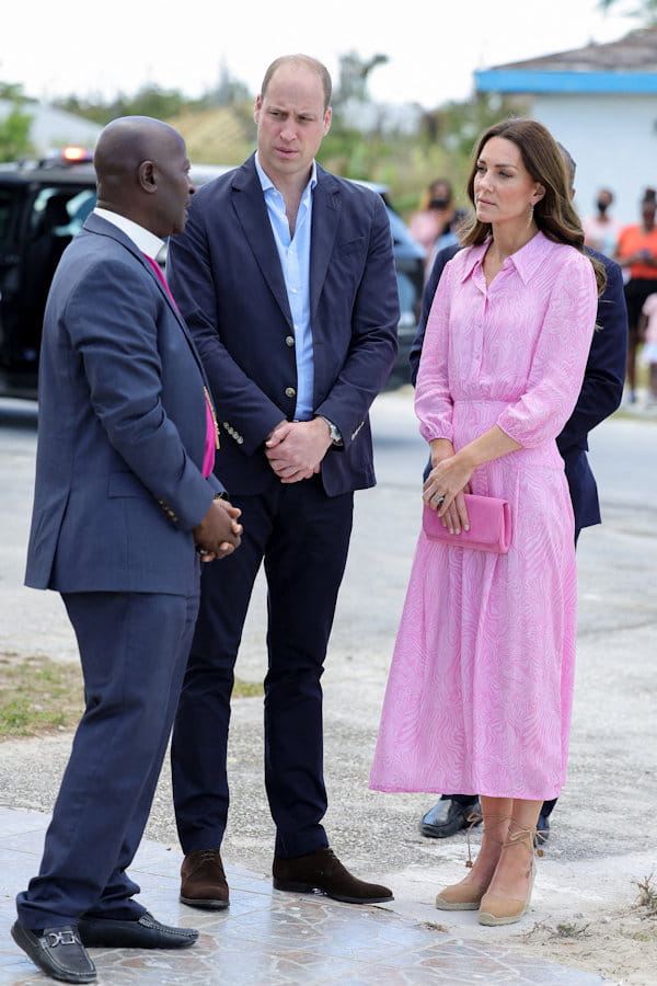 Kate Middleton en robe lilas le 26 mars 2022 aux Bahamas.