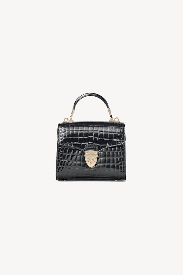 Sac à main en cuir noir embossé croco "Mini Mayfair" d'Aspinal of London